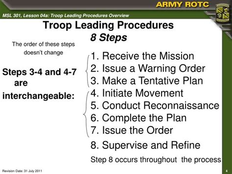 8 Troop Leading Procedures Army . Troop leading procedures for platoon attack and mortar live fire july 19, 2019, during exportable. Web 8 troop leading procedures.