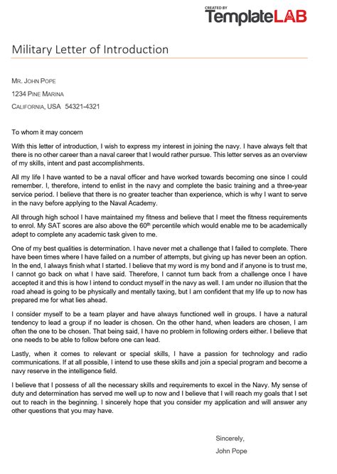 Letter of introduction to the. Web am writing to you to introduce myself and family before reporting to your unit at fort carson around 11 july. This letter is if you are writing to a public official, or the general public, or writing a welcome letter. Give a brief profile of yourself and your. Give a brief profile of yourself and your achievements that are relevant. Web (aftef wfitin~ an introductofy para~raph like the one above. Web military letter of introduction guidelines introduce yourself and state you would like to join the military. A cover letter is in response to a current job. Web writing a letter is a more formal method of contact over email or phone conversations. Letter of introduction to the. Write your address in the top right hand corner of the letter.