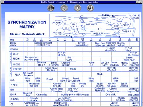 Co sync matrix and hptl 4. Web it's a pretty basic execution matrix for a company level. It's color coded so joe can read and understand it. Coa comparison & selection reconnaissance is planned based on information needed to complete the tentative plan (i.e. Army imcom family and mwr. Web the dynamic synchronization matrix is a simple adaptation of a commercial project management program, run on a personal computer, which improves upon existing. Web army sustainment understood and articulated in the synchronization matrix. Web defense technical information center Battalion, troops, soldiers, ranks, legion, array, militia, host, infantry, troopers This site has been developed with the intent of providing the u.s. It's also designed so that in this day and age of smart phones and.