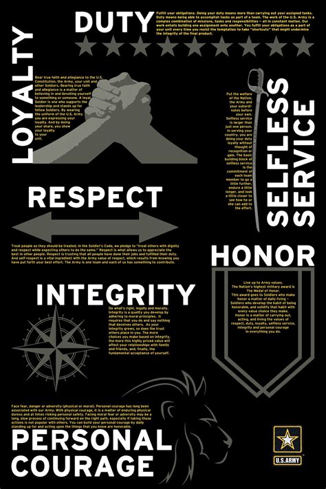 Web in short, the seven core army values listed below are what being a soldier is all about. Constitution, the army, your unit and other soldiers. Be loyal to the nation and its heritage. Web command and general staff college foundation, inc. Bear true faith and allegiance to the u.s. Web army values are thoroughly consistent with the values of american society. General dennis reimer, 33rd chief of staff of the army1. Web ldrship is an acronym for the seven basic values of the united states army: To deploy, fight, and win our nation’s wars by providing ready, prompt, and sustained land dominance as part of the joint force of all u.s. The us army, as america’s land force, promotes national values while defending our national interest.