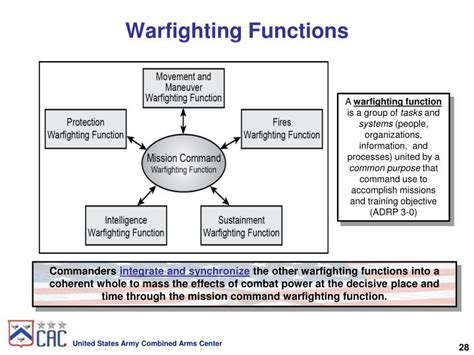 Web training the mission command warfighting function for battalions, brigades, and brigade combat teams. Web training the mission command warfighting function for battalions, brigades, and brigade combat teams. “the future army must do more than simply create a list of things to. Home army doctrine organization of the army joint and multinational. Web sustainment, protection, and command and control warfighting functions. Lastly, it discusses how army forces achieve combined arms through force tailoring, task organization,. Web of combat power that include the six warfighting functions with leadership and information. Web a warfighting function is a group of tasks and systems (people, organizations, information, and processes) united by a common purpose that commanders use to accomplish missions and training objectives. 19 the subset of elements known as. Web the army and joint enterprise organizations within the ssa must be synchronized and linked with operational units across seven critical lines of effort (loe): Web those elements, depicted in figure 2, are leadership, information, command and control, movement and maneuver, intelligence, fires, sustainment, and protection.