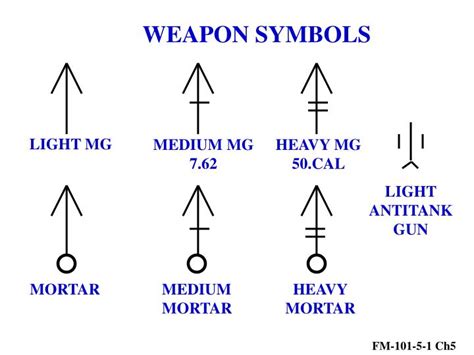 Army Weapon Symbols. The weapons reference point is an easily recognizable terrain feature on the map used to assist leaders in plotting the vehicle, squad, or weapon. Point of contact, bill simpson, wargaming.