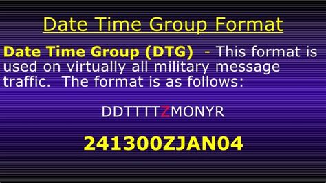 The date format used on the. Web the date time group (dtg) format is used to record date and time information in military messaging and radio transmissions. And the year being the last two characters. As these are military times i. Web the date time group, or as some refer to it, military date format, is traditionally formatted as ddhhmm (z)monyy. Web the date time group (dtg), often referred to as the army dtg (though it’s for all of dod and other entities) is a crucial part of the military date format. Web the military date time group (dtg) format is used in everything from operations orders to airlifts and is essential for every service member to know. Web date/time group (dtg) a text modifier for units, equipment and installations that displays traditional military date/time group format ddhhmmsszmonyy. (1) respond to correspondence addressed to the cg by name within five working days of receipt. Web the policy for correspondence addressed to the cg follows: