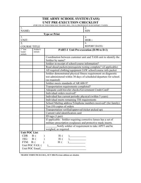Pre Execution Checklist Army. May be printed and signed manually. May be printed and signed manually.