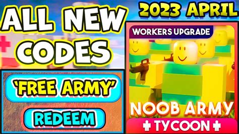 Roblox Noob Army Tycoon Codes. The following codes for noob army tycoon have expired and can no longer be redeemed: 1k gems christmas — redeem for 1k gems free5000gems — redeem for 5,000 gems noube — redeem for 1000 money, 5000.