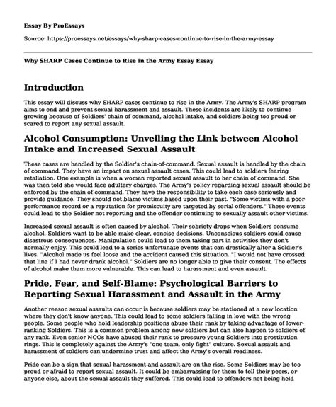 Web according to the u.s army sharp website, “recent dod reports showed 27 percent of men, versus just 9 percent of women characterized the sexual assault. The contributors to the program are not chosen properly. The main reason why the program is failing is the people who run the program. Web the main purpose of conducting sharp training annually is to try and eliminate the amount of cases, as well as ensuring every service member feels a sense of respect and dignity. Web the number of sexual assaults continue to grow in our army. Web the pentagon's anonymous survey of sexual assault in the military shows a sharp increase. Web in conclusion, sharp instances continue to increase because of toxic chain of commands, alcohol, and soldiers too scared to report sexual harassment or. Seeing that it is an ongoing issue in the army, there. Web the sexual assault is going to keep the increment of reports and cases, just because we are professionals and now the army are taking out the fear of the victims. A senior mp tells sky. Web these sharp cases continue to rise due to the toxic chain of command, alcohol and soldiers who are too afraid to report sexual harassment and assault.